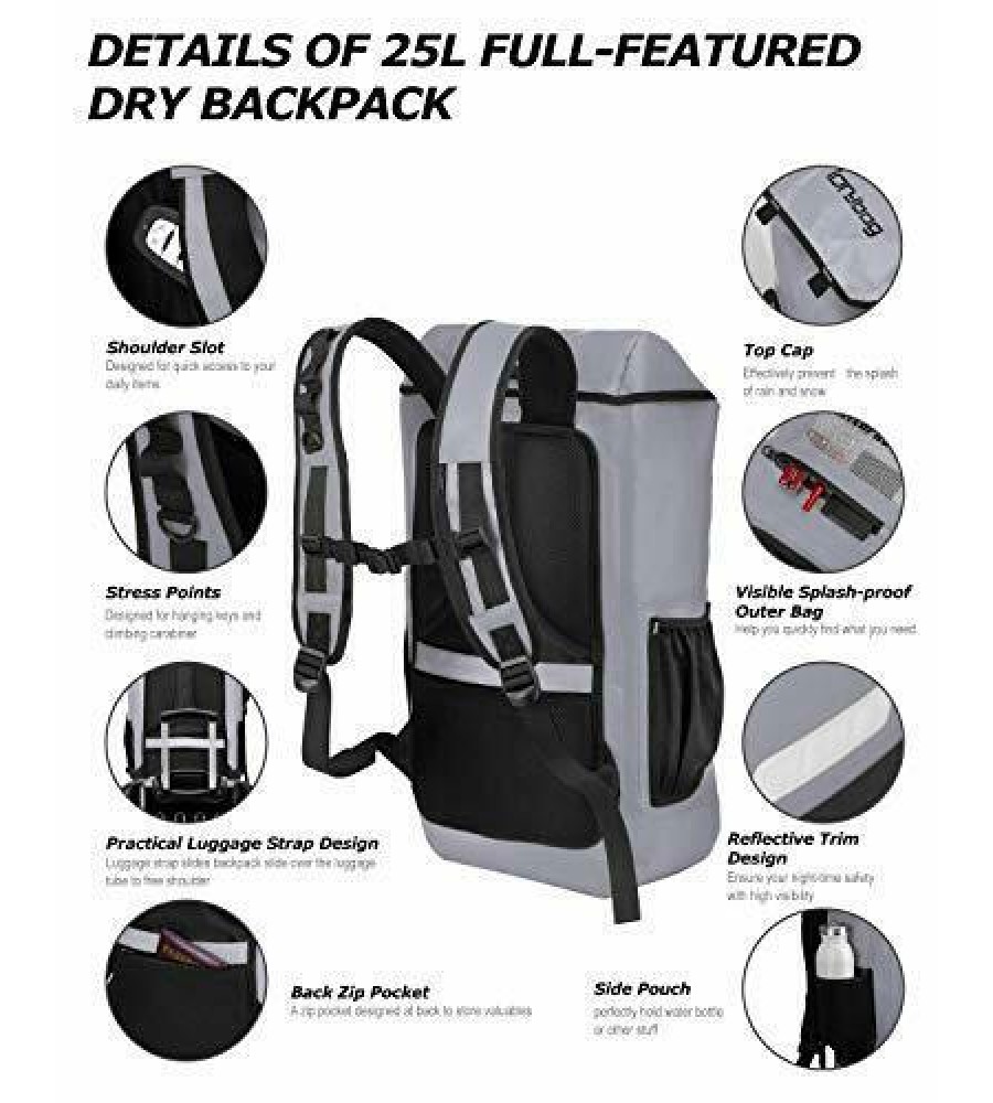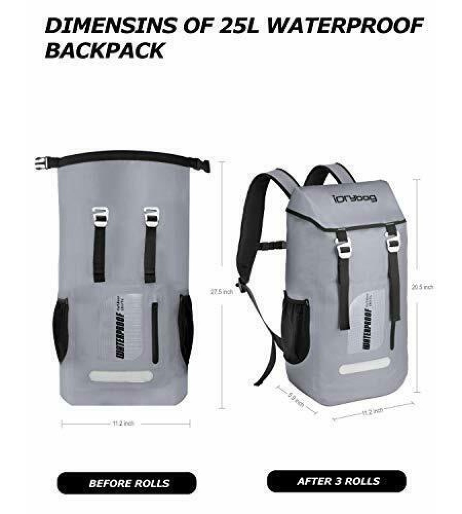 Dry Bag Backpack Waterproof 25L, Floating Dry Backpack Water Sport, Gray