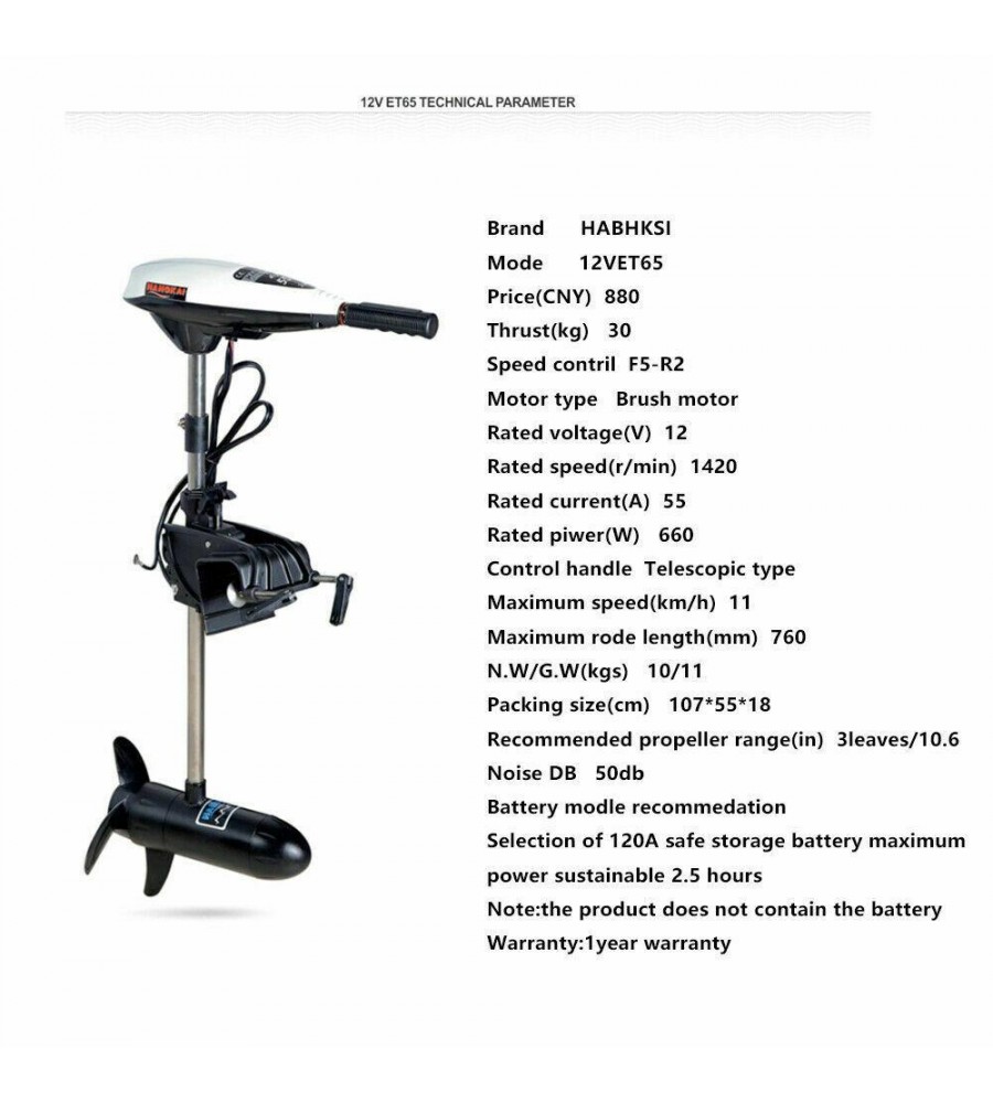Electric 65lb 12V Trolling Motor Outboard Engine Outboard Motor 660W 100% New