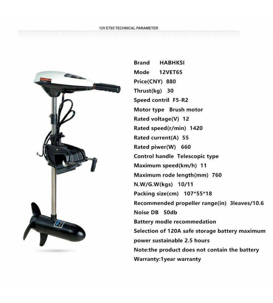 HANGKAI 12V Electric Motor Trolling Motor 65LBS Outboard Engine Boat Motor