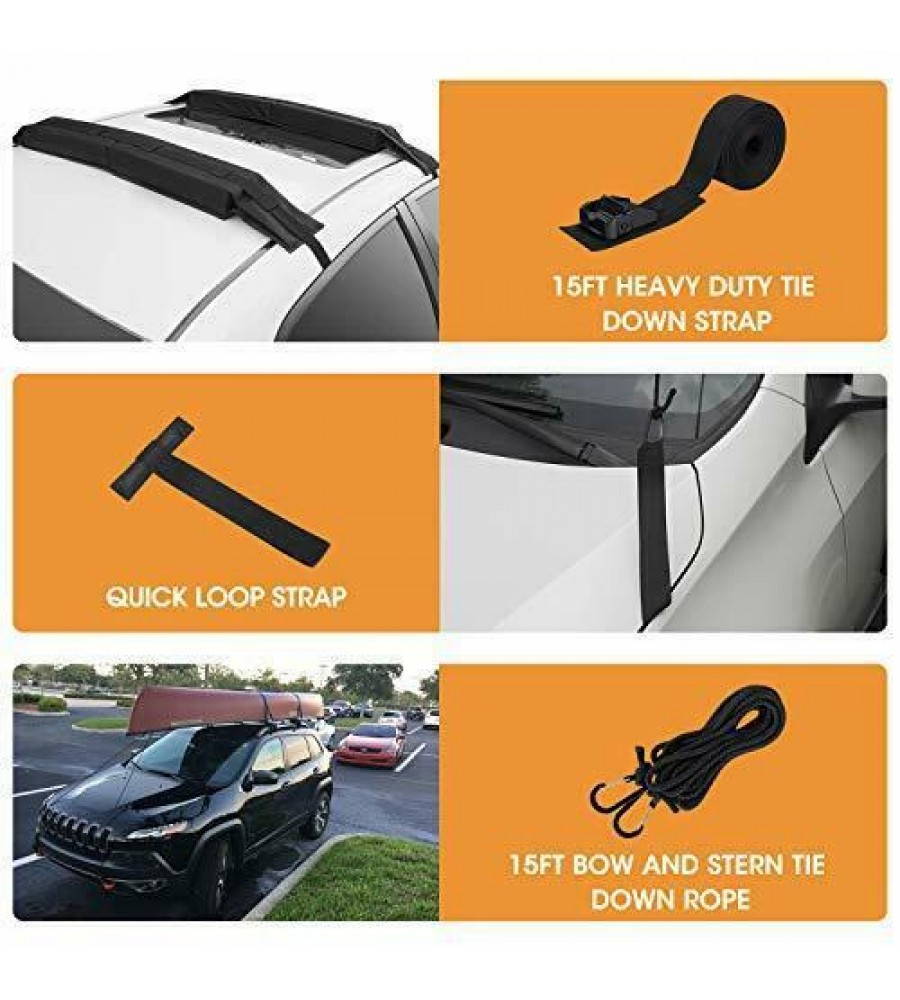 Universal Soft Roof Rack Pads for Kayak /Surfboard /SUP /Canoe with 15FT Tie-Do
